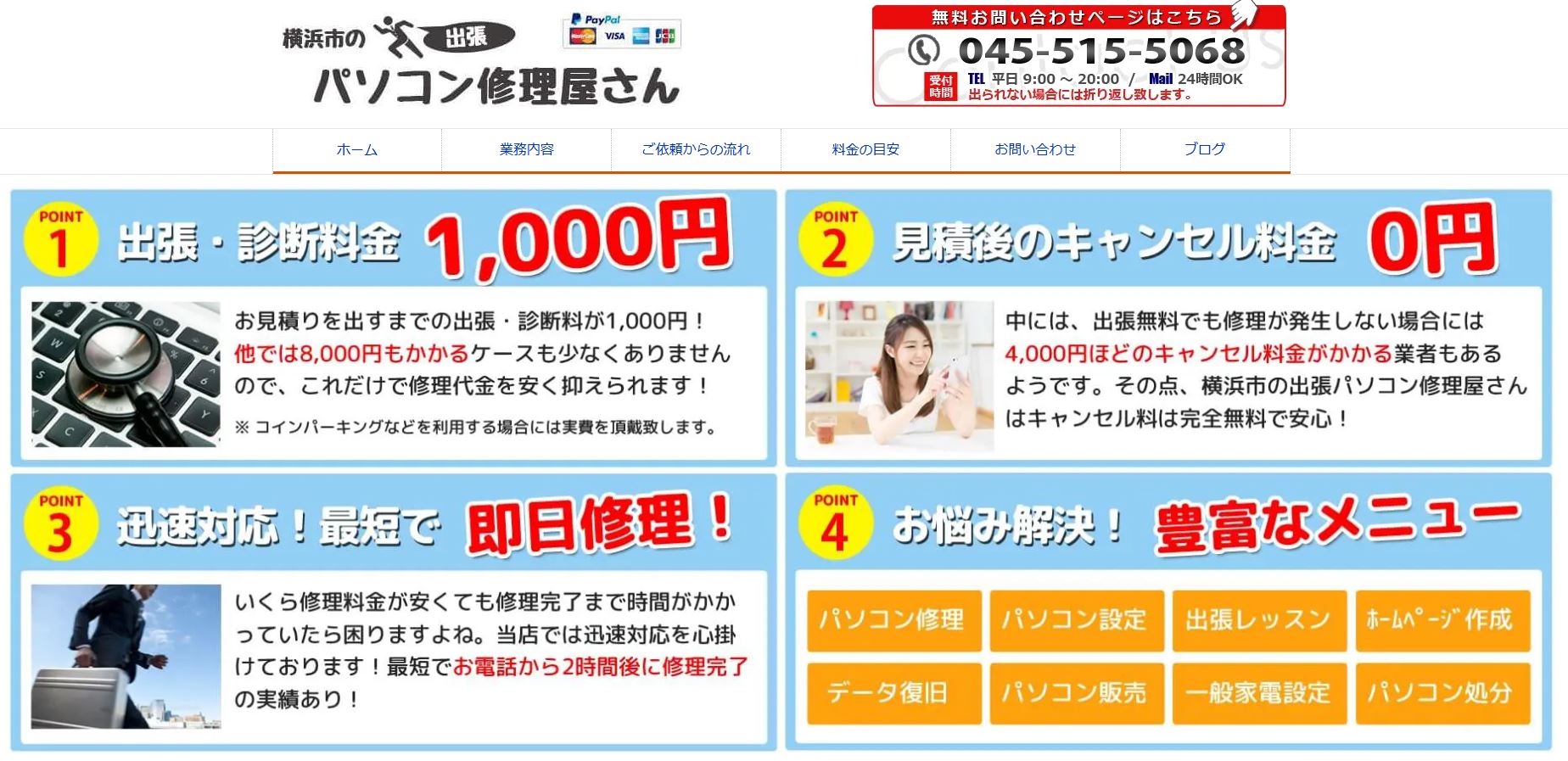 横浜のPC修理業者ランキングで、当サイトが1位に上げるのは、名前も分かりやすい「横浜市の出張パソコン修理屋さん」です!